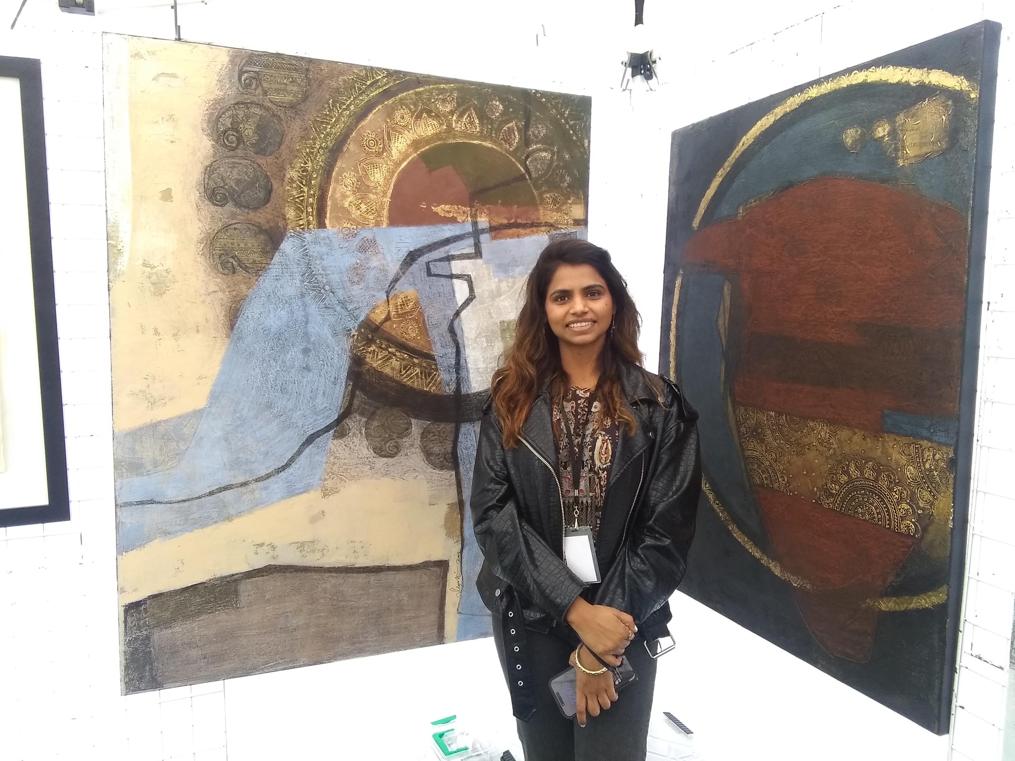 Indeed, there is another purchase I made. Deepti Saxena is a local artist. I had seen her work at the Toronto Outdoor Art Fair in 2023, and this piece made an impression. I went ahead and bought it nearly a year later (after I got my tax return...). I had said I would pick it up at the Leslieville Art Walk at Jimmie Simpson Park, but Deepti actually delivered in person the day before. This was just as well, as it is larger than I remembered, and I certainly couldn't have brought it home on my bike!