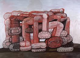Guston was known for all these legs scattered-about, almost looking like what you would see in a charnel house (or given the resemblance to horseshoes, the leftovers from some kind of abattoir or rendering plant).